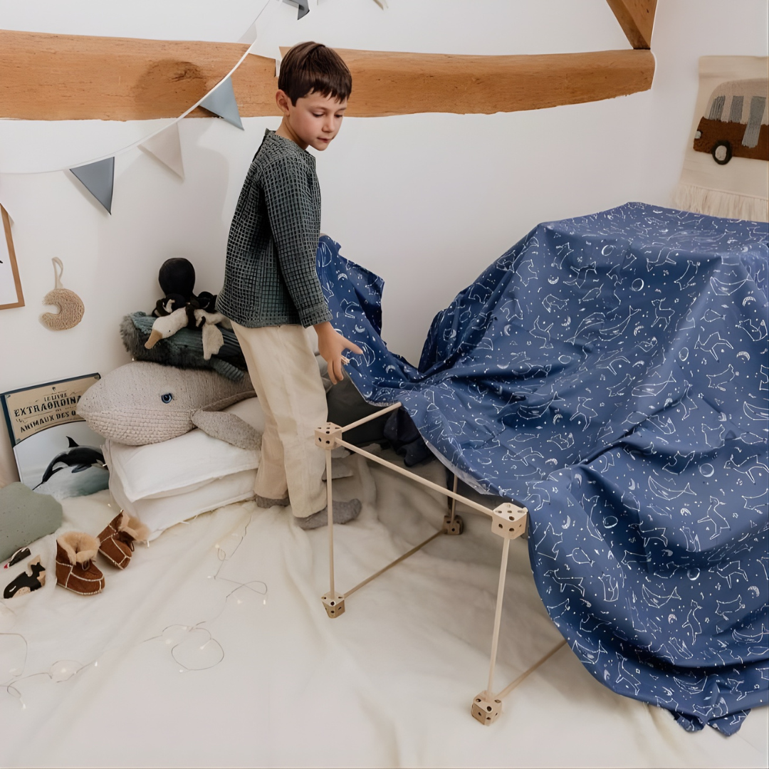 Un kit per tana più grande con tessuto "Starry Night" per creazioni magiche ancora più grandi.