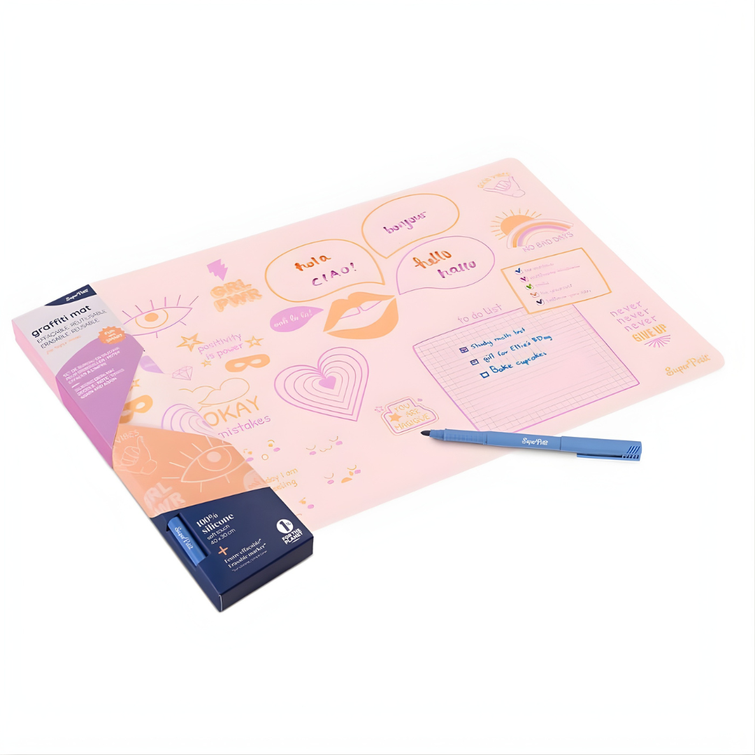 Il tappetino Super Teens Graffiti di Super Petit porta l'arte urbana a casa tua. Questo tappetino riutilizzabile ti aiuta a: