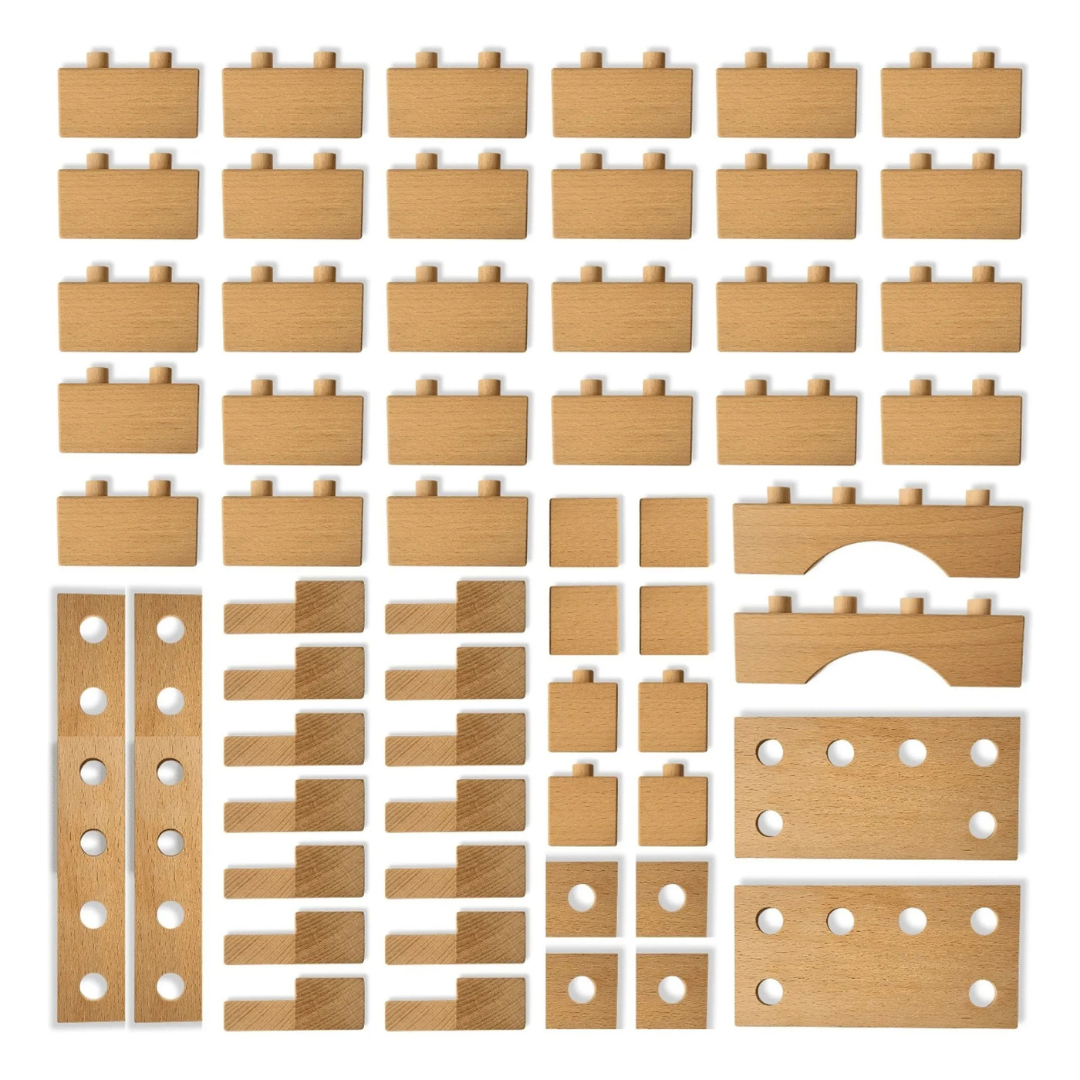 A generous set of solid beech wood blocks for more complex construction projects.