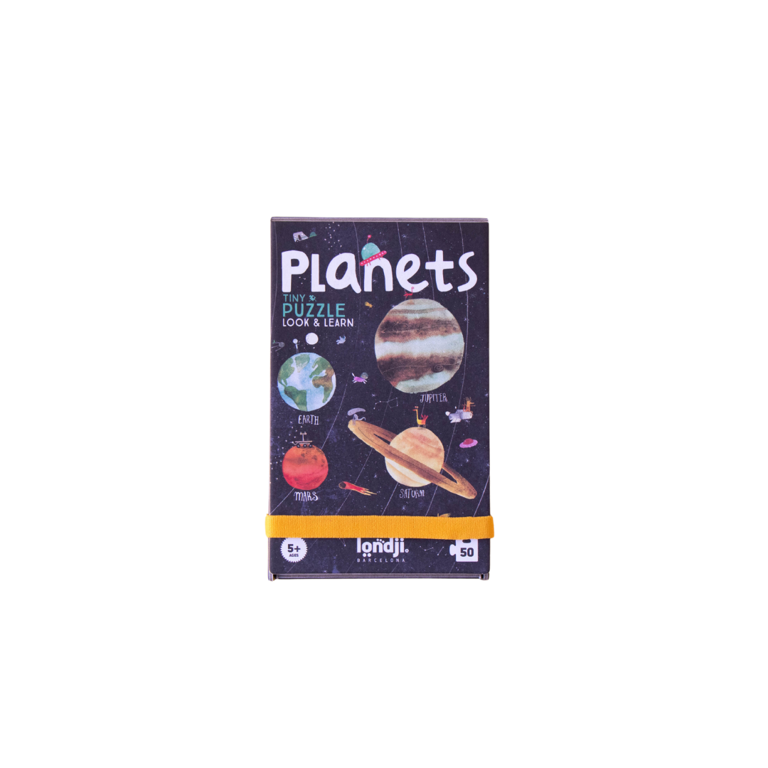 Londji's Discover the Planets Tiny Puzzle brings space exploration anywhere. This travel-sized puzzle helps children: