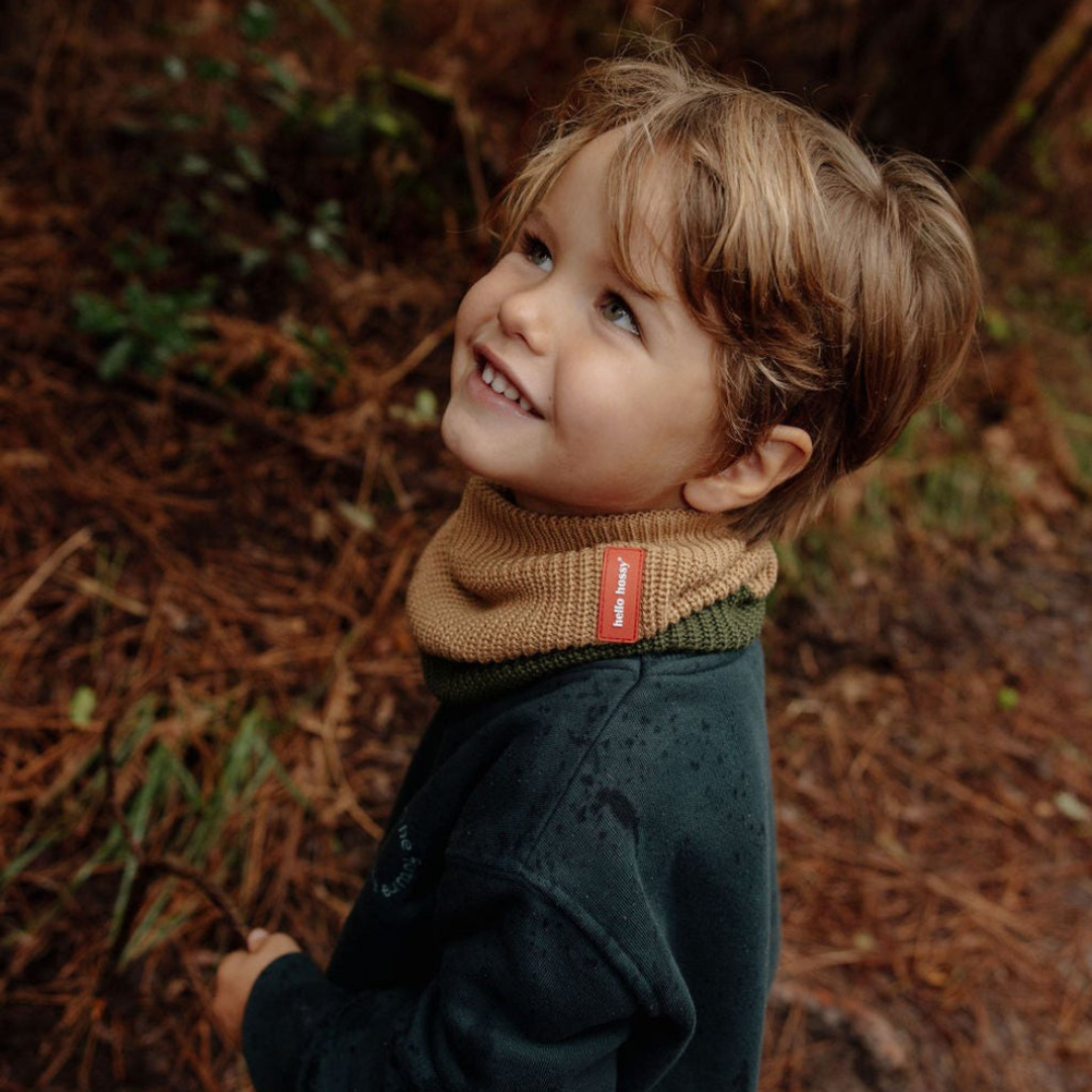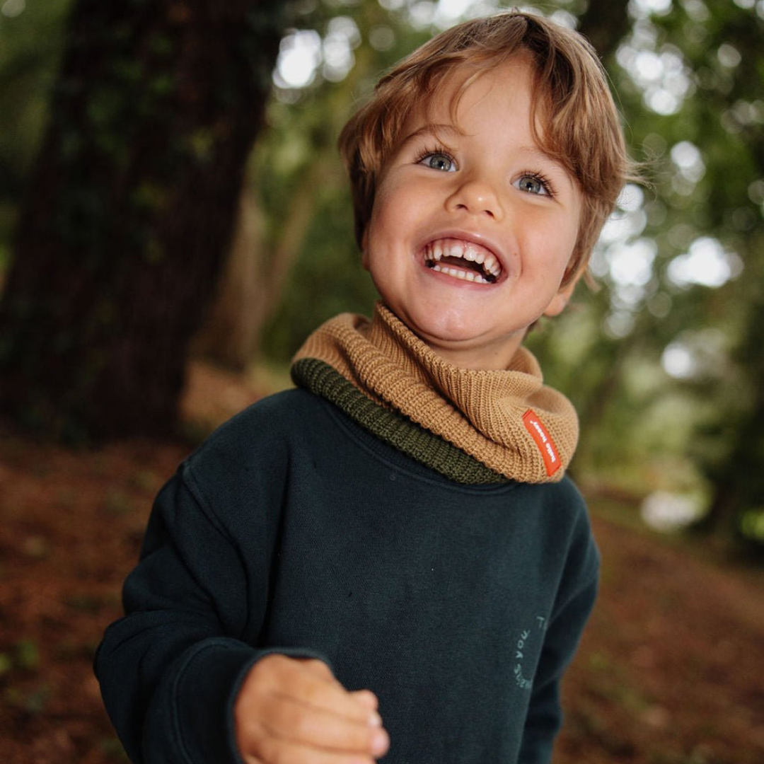 Made from 50% organic cotton, with a plush fleece lining, it keeps little explorers warm and cosy while remaining breathable and lightweight. Whether playing in the mountains, at the seaside, or in the city, this versatile snood is the perfect cold-weather companion.