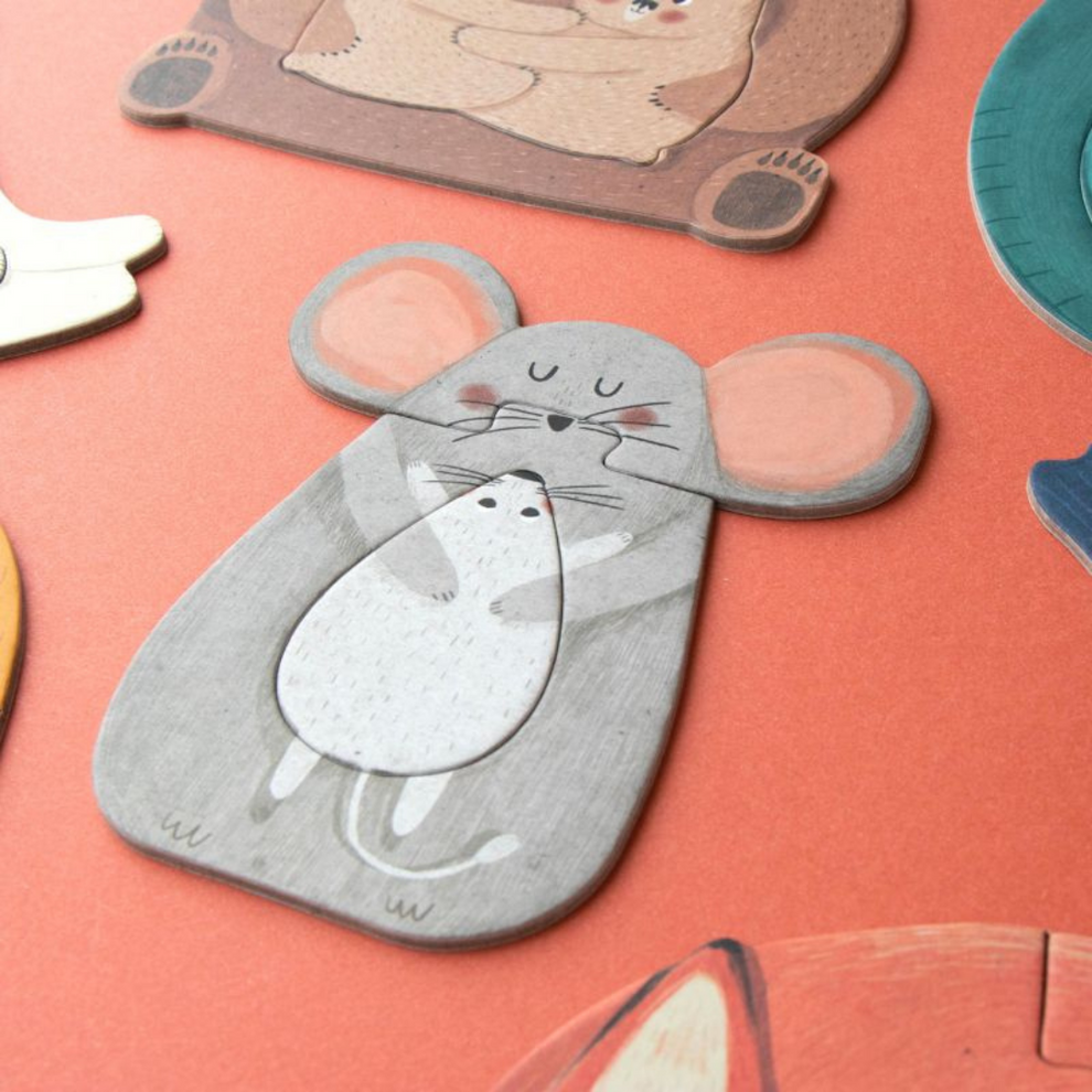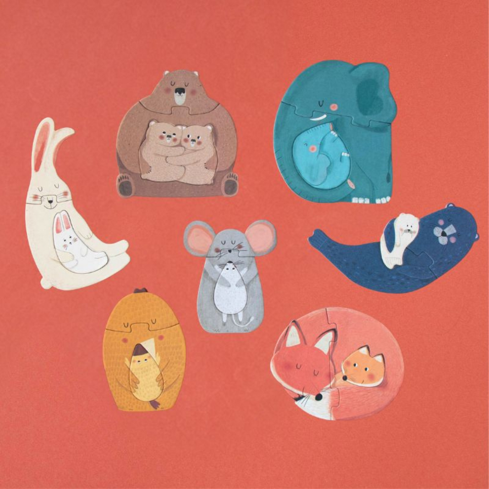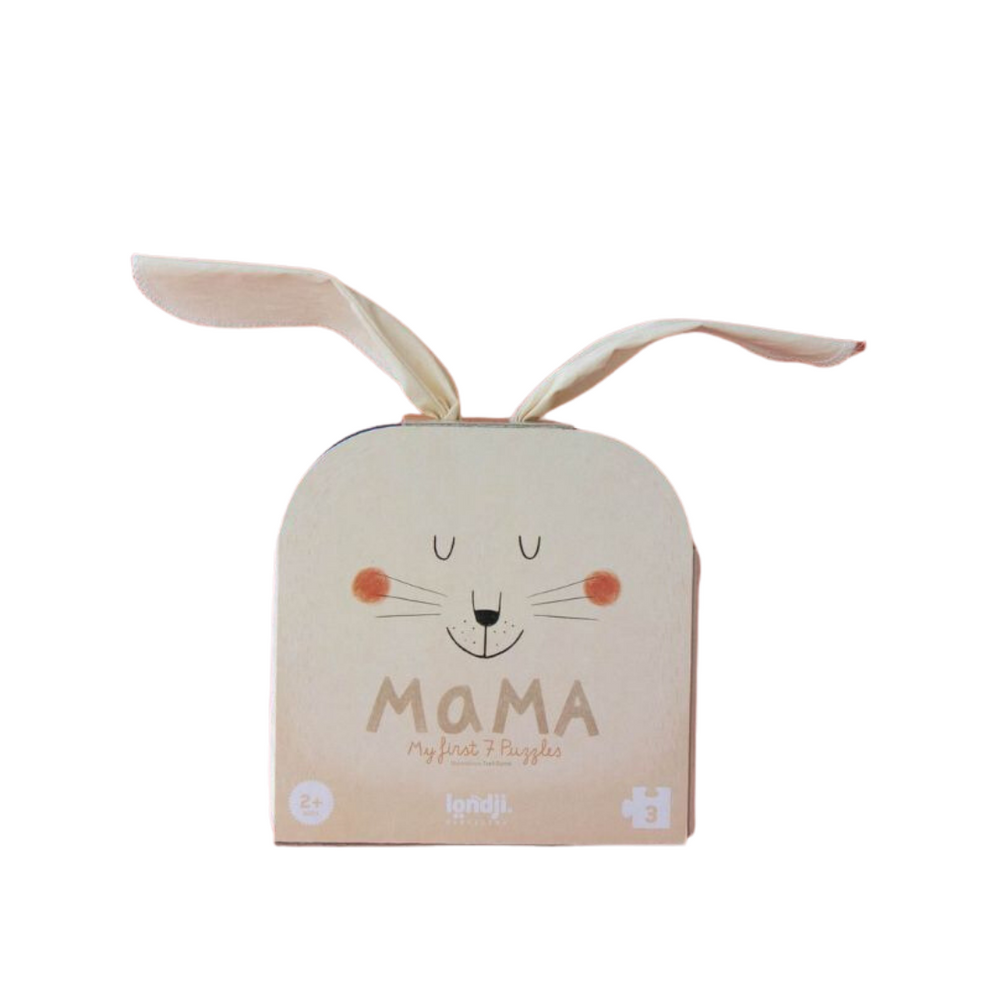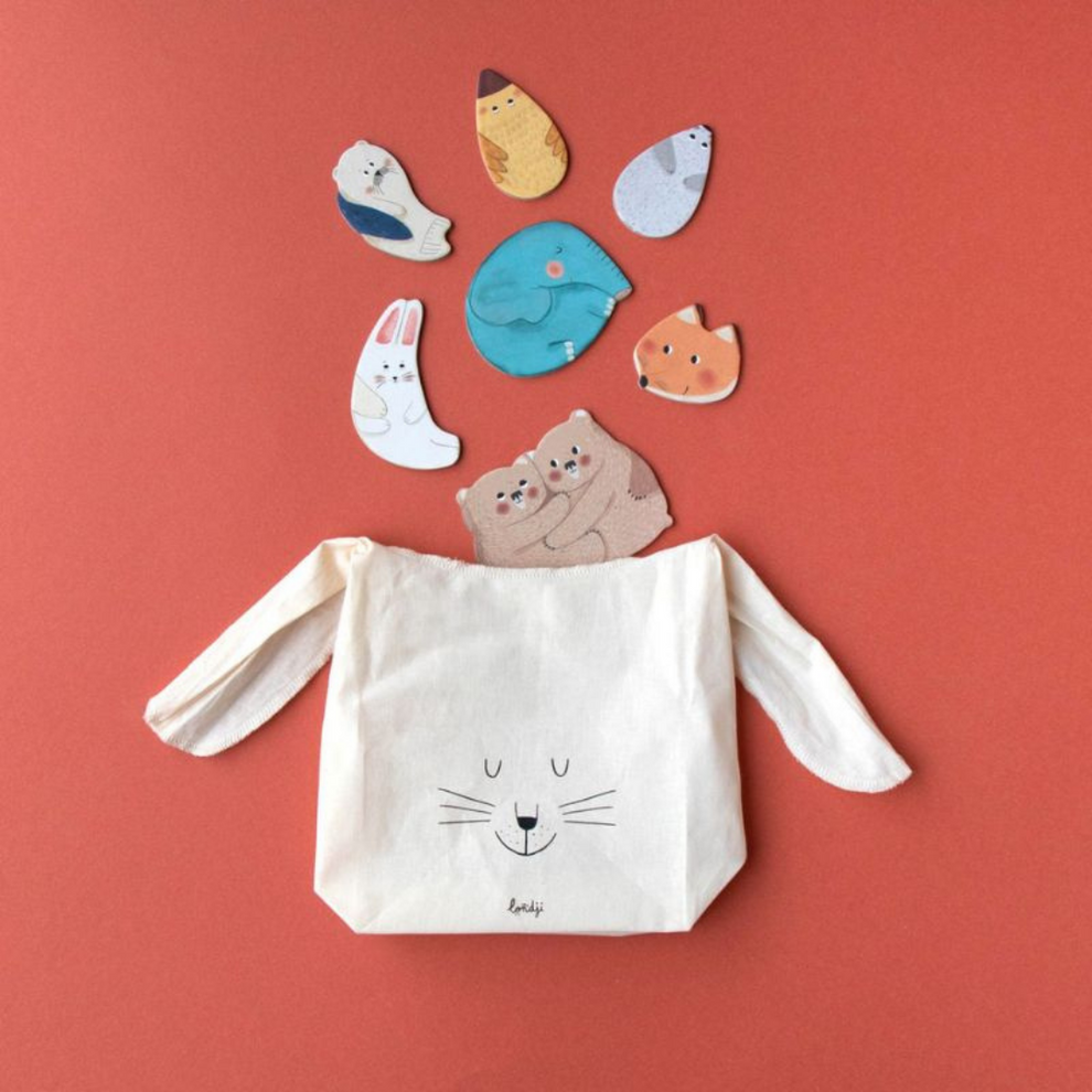 Dive into a thoughtful playtime with Londji's "Mama My First 7 Puzzles". Each set celebrates the close-knit bond between mother and child in the animal kingdom. Housed in a uniquely designed bag with rabbit ear detailing and made from sustainably sourced materials, this puzzle set is a delightful, eco-conscious gift for kids aged 2+.